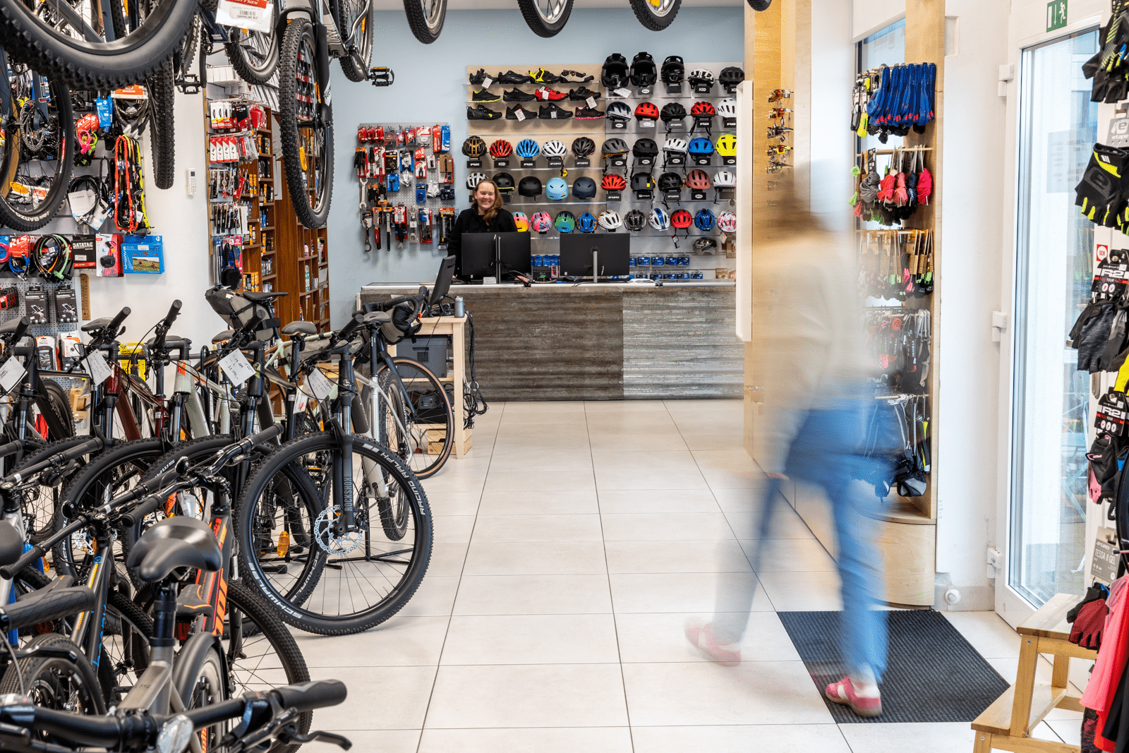 - Široký výběr kol – horská, silniční, trekingová, gravel, dětská i elektrokola.